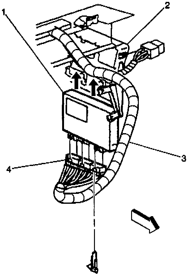 2. Use pressure tabs in order to release the EBCM/EBTCM (1) from the EBCM/EBTCM bracket (2).
