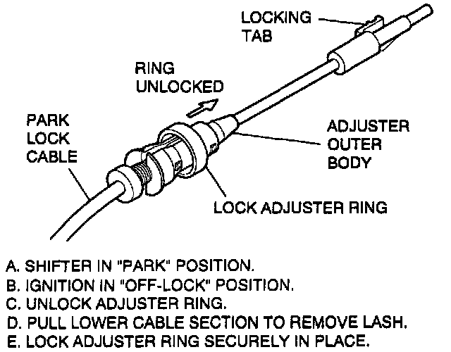 E. Lock adjuster ring securely in place on cable assembly (48) with tool J 41396.