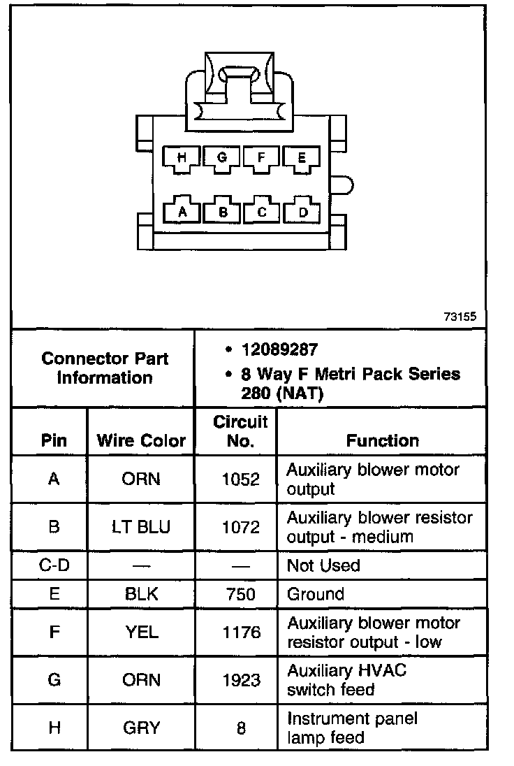 Air Conditioning Switch Rear Connector: