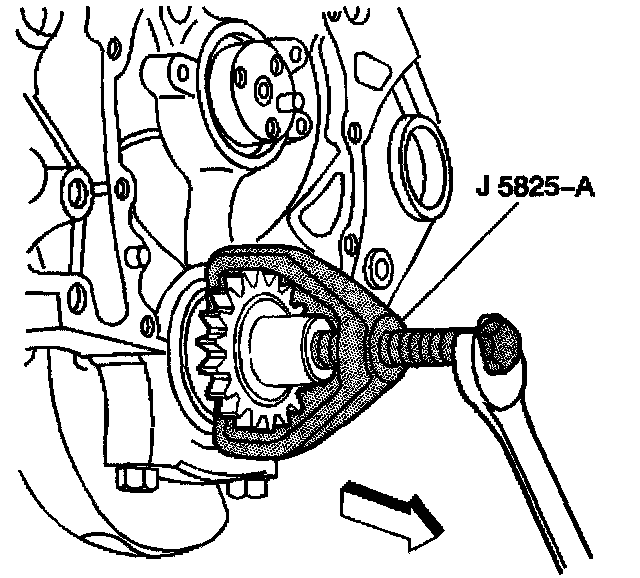 8. Use the J 5825-A in order to remove the crankshaft sprocket.
