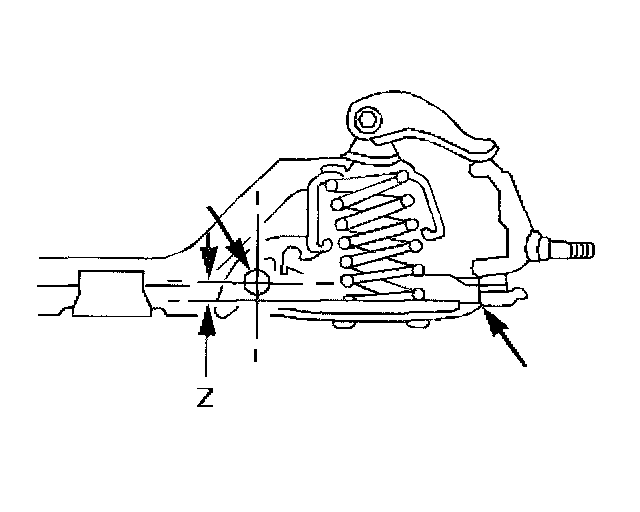 8. Measure from the lower control arm pivot bolt center line down to the lower corner of the steering knuckle in order to obtain the Z height dimension.