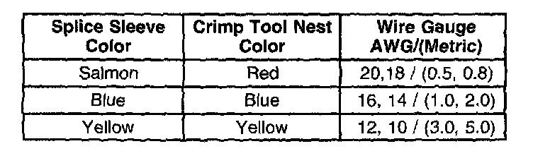 5. Select the proper splice sleeve (2) and the required crimp nest tool, refer to the Crimp and Seal Splice Table.