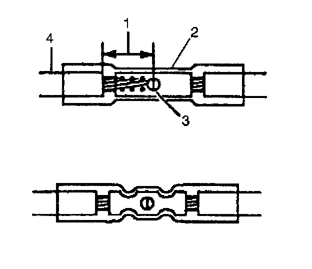 9. Insert the wires into the splice sleeve until the wire hits the barrel stop. The splice sleeve has a stop in the middle of the barrel in order to prevent the wire from passing through the splice (3).