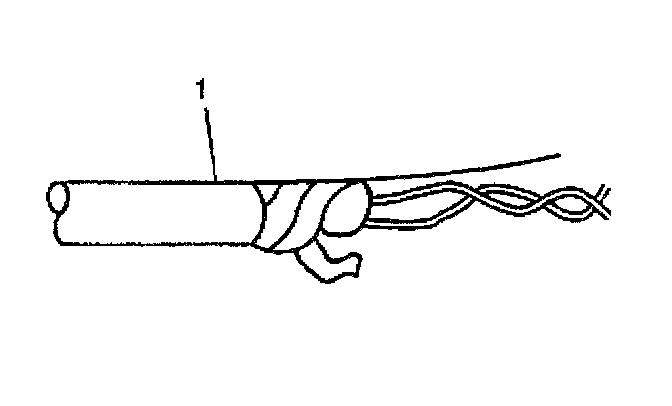 1. Remove the outer jacket (1). Use care not to cut into the drain wire of the mylar tape.