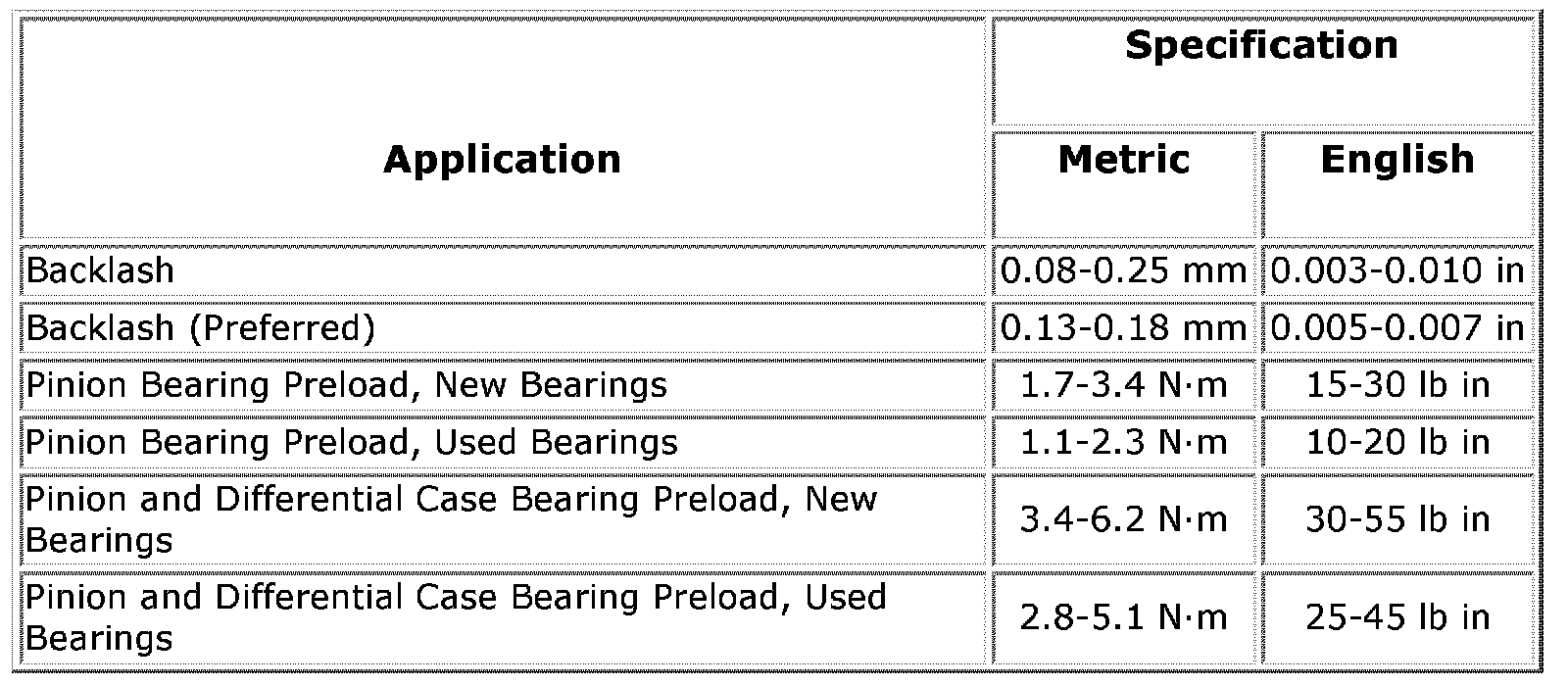Pinion Preload and Backlash