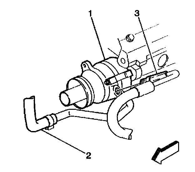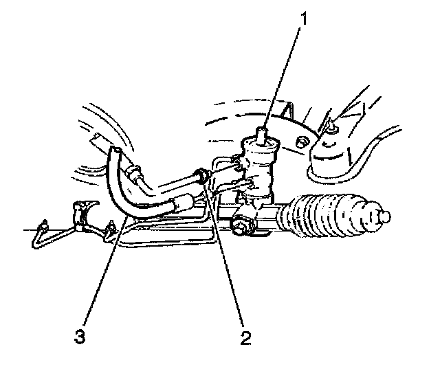 3. Remove power steering gear inlet (3) and outlet (2) hoses from steering gear (1).