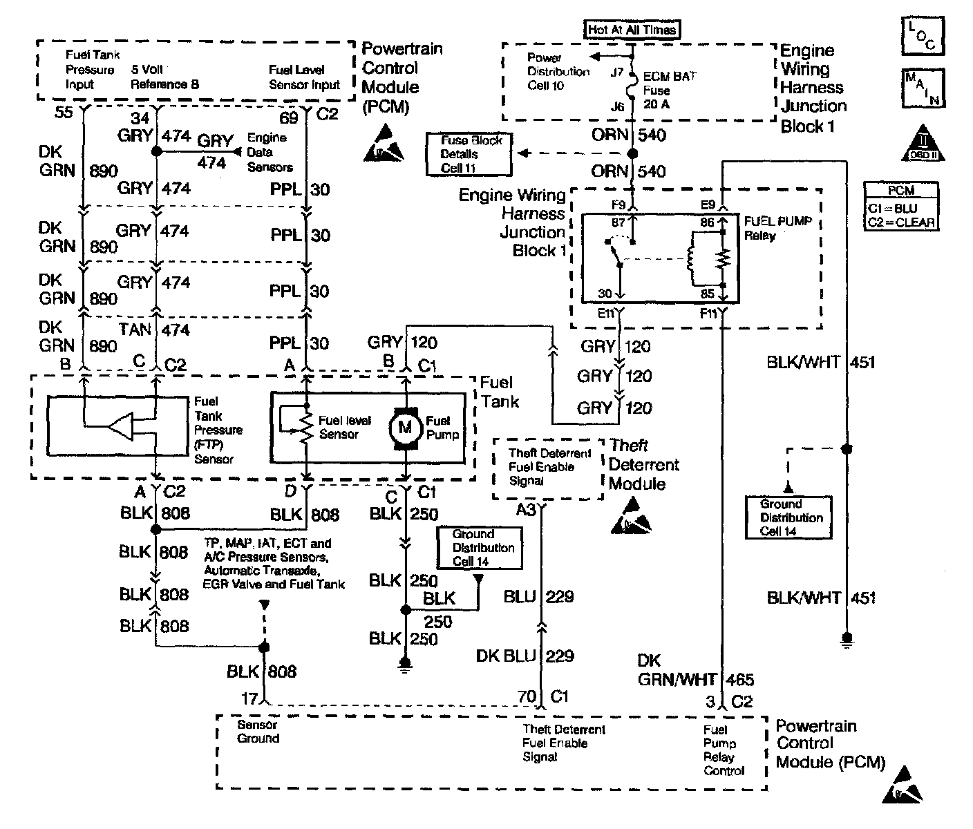 The PCM supplies 5 volts to the fuel level sensor circuit. The fuel level sensor varies the voltage relative to the amount of fuel in the tank. The PCM monitors the voltage on the fuel level circuit to calculate the amount of fuel on the tank. The PCM uses fuel level information to enable the enhanced evaporative emission diagnostic.