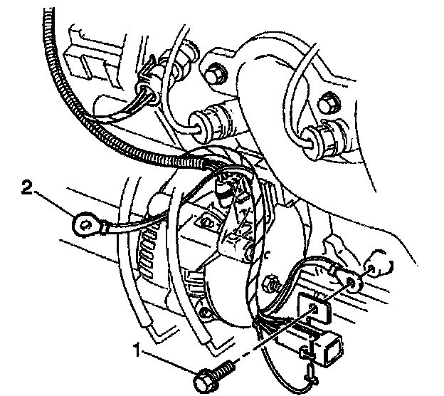 3. On the 5.7L engine, remove the engine wiring harness ground bolt from the block (1).