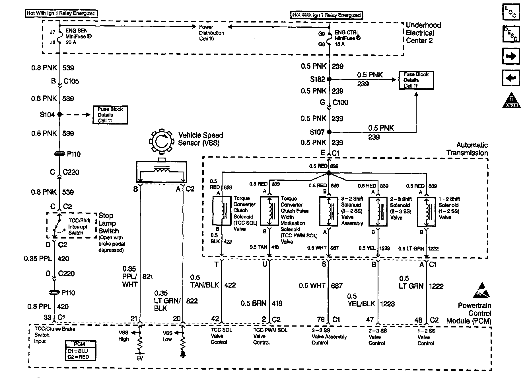 Automatic Transmission Controls Schematics (Brake Switch, TCC Solenoid)