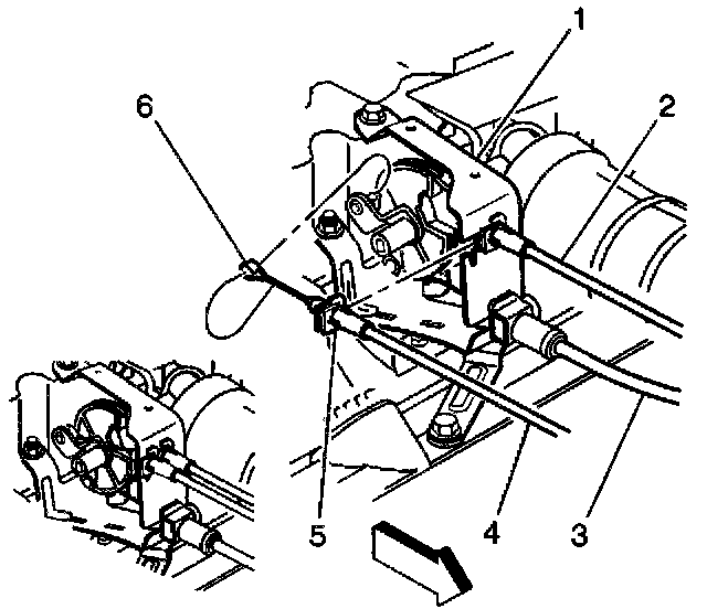 3. Push the locating fitting inward to release the cable. Pull the cable from the bracket.