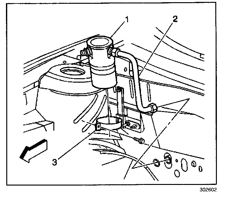 6. Remove the clamp on the accumulator bracket (3).