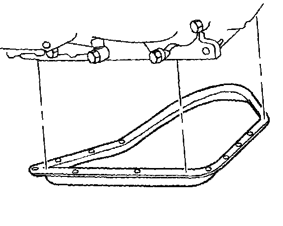 13. Remove all traces of old gasket material. Clean the transmission case and the oil pan gasket surfaces with solvent, and allow to air dry.