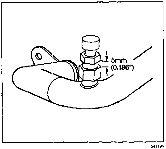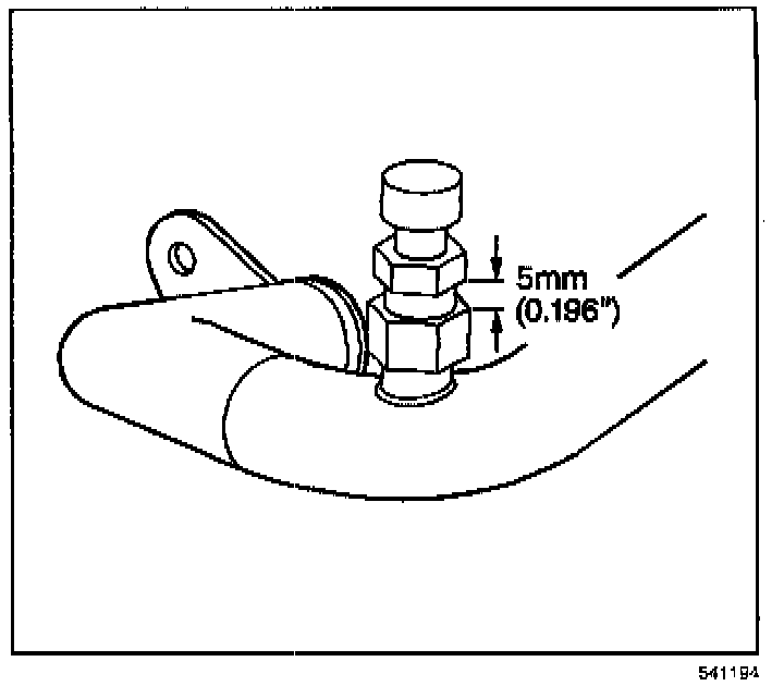 3. Observe the gap between the bottom of the hex on the coolant temperature sensor and the top of the hex on the fitting brazed to the radiator inlet pipe. It may be helpful at this point to mark the coolant temperature sensor thread with a reference mark 5 mm (0.196 in) down from the bottom of the hex on the sensor.