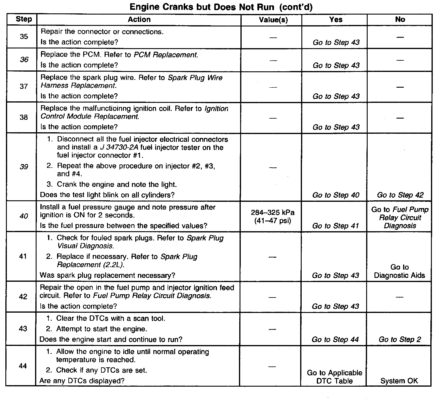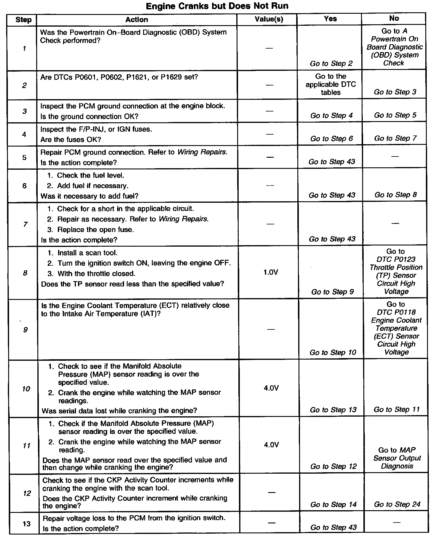 2. Diagnosis of the DTCs that may be set could lead to the cause of the Cranks But Will Not Run condition.