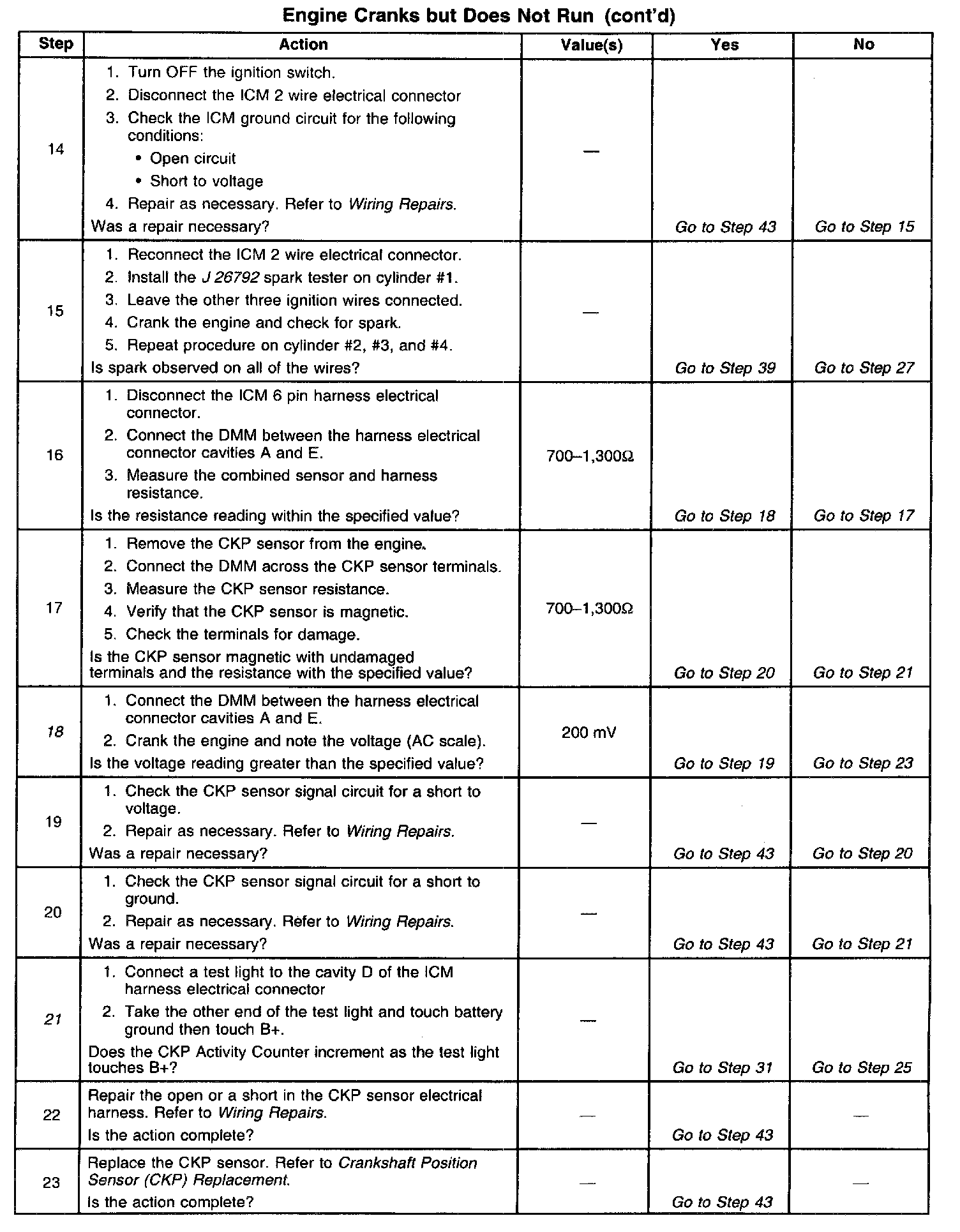 27. This step checks the ignition control circuits and the ICM.