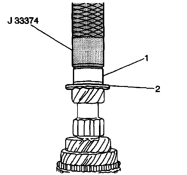 10. Install the collar (1) and the stopper plate (2) using the J 33374 and a press.