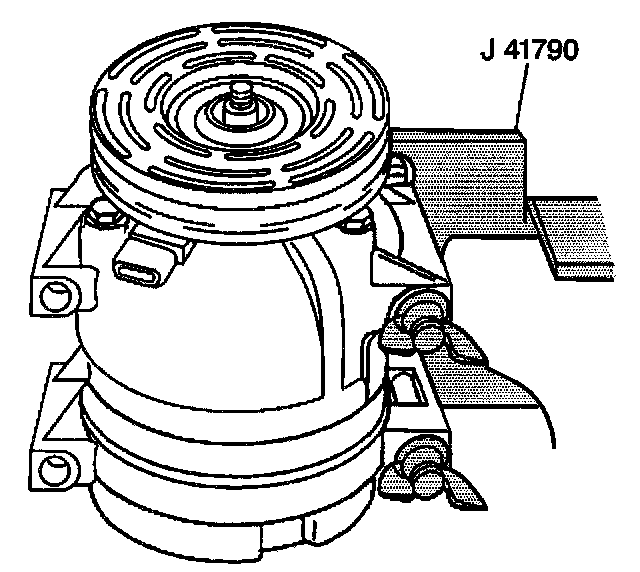 2. Clamp the compressor holding fixture, J 41790 in a vise and attach the compressor to the J 41790.