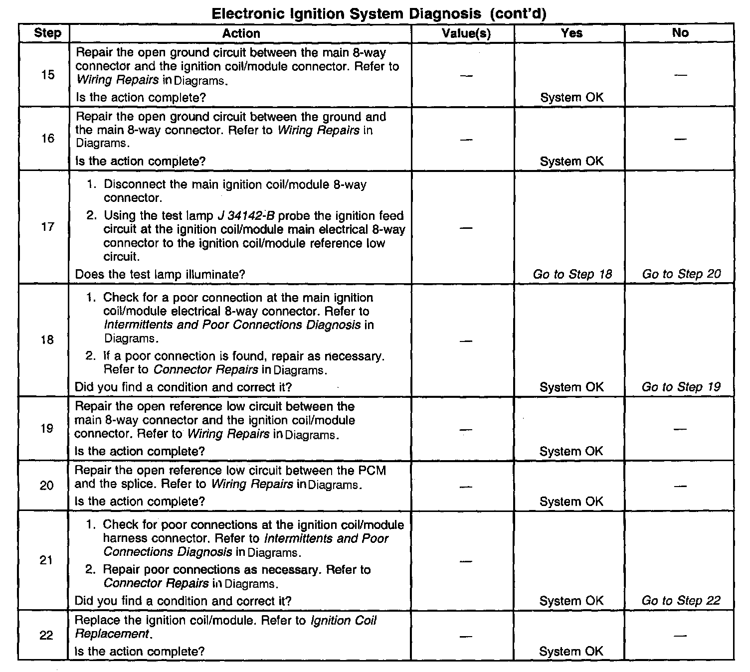 The numbers below refer to the step numbers on the diagnostic table.