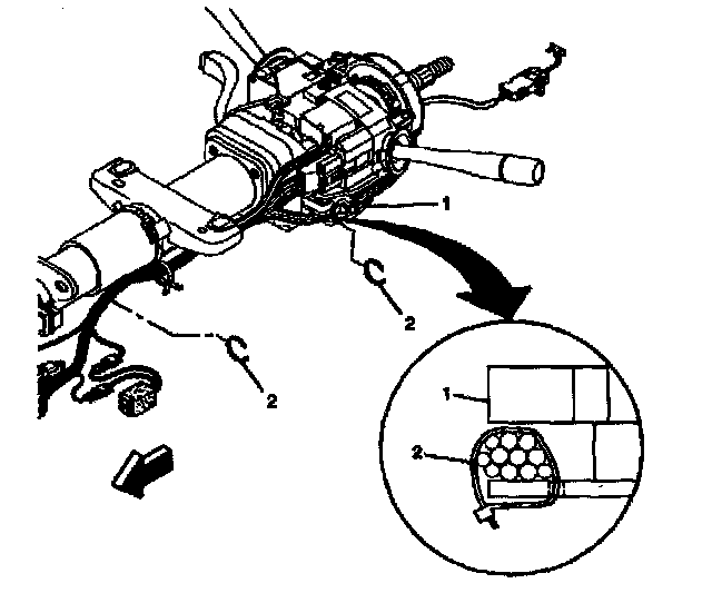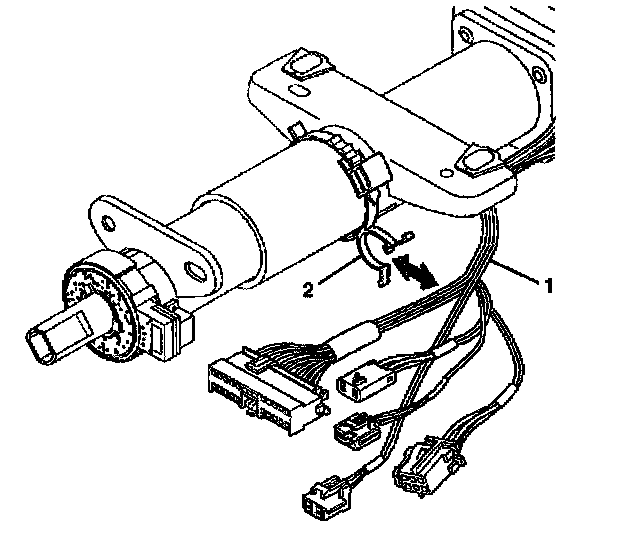 4. Install new wire harness straps (2) to the steering column assembly (1) and the column.