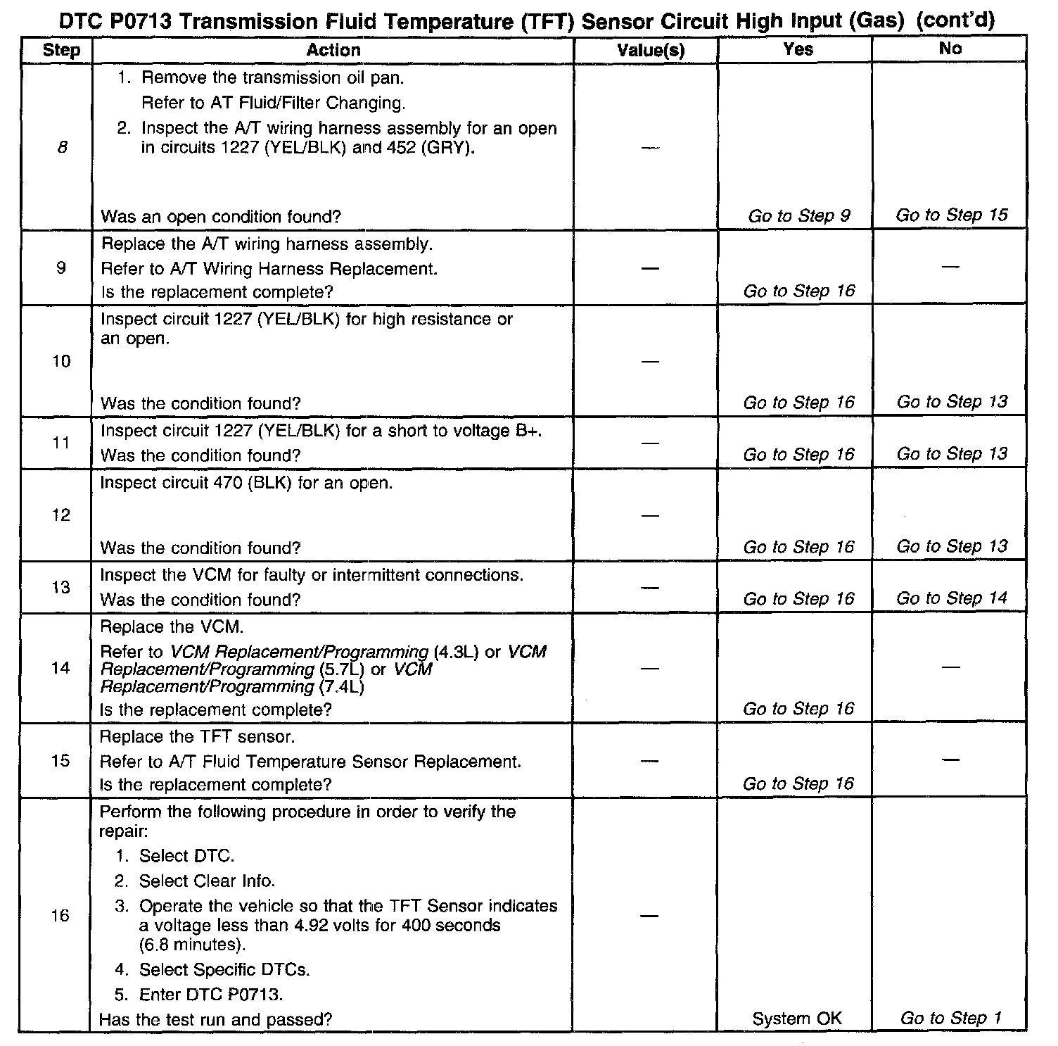 8. This step inspects the TFT sensor and the automatic transmission wiring harness assembly (A/T wiring harness assembly) for an open Circuit 470 becomes circuit 452 inside the transmission.