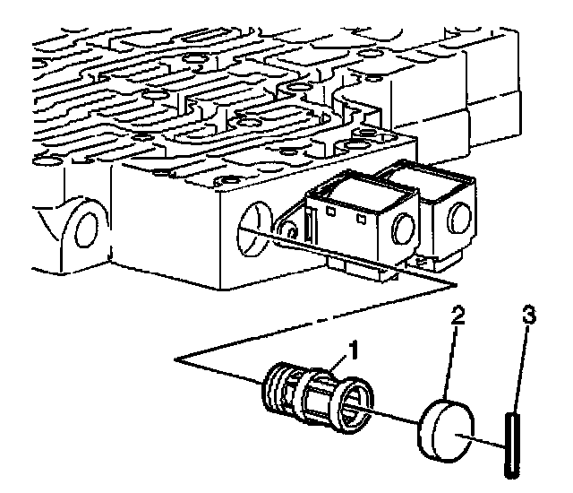 19. Install the shift valve fluid filter bore plug pin (3).