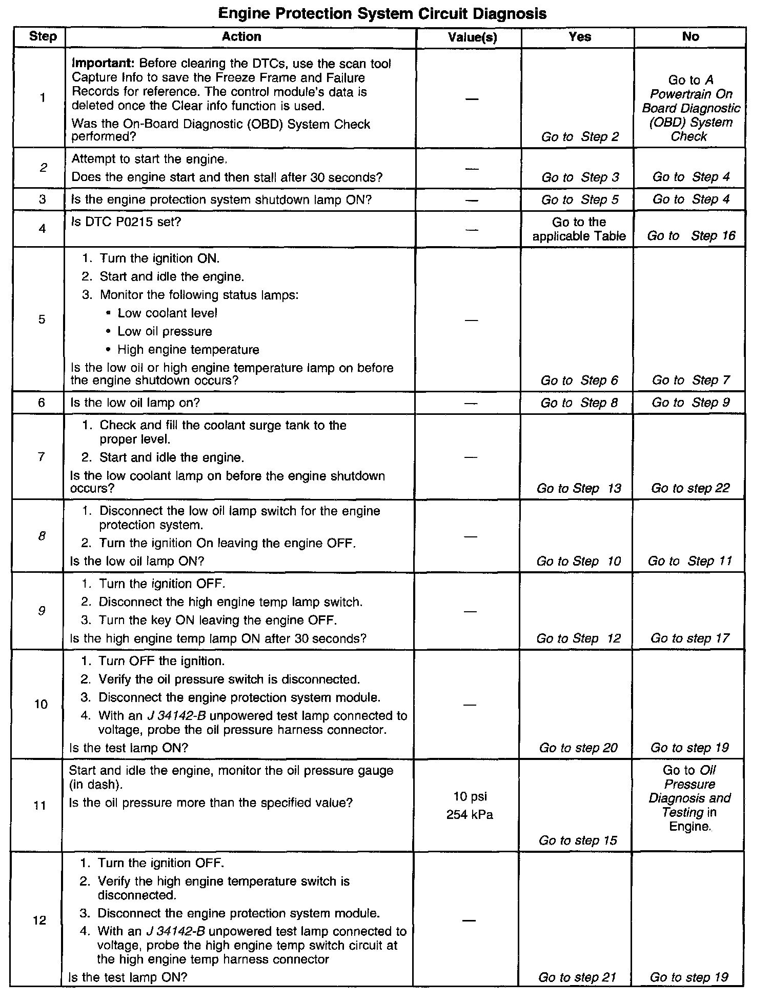 The number(s) below refer to the step number(s) on the diagnostic table.