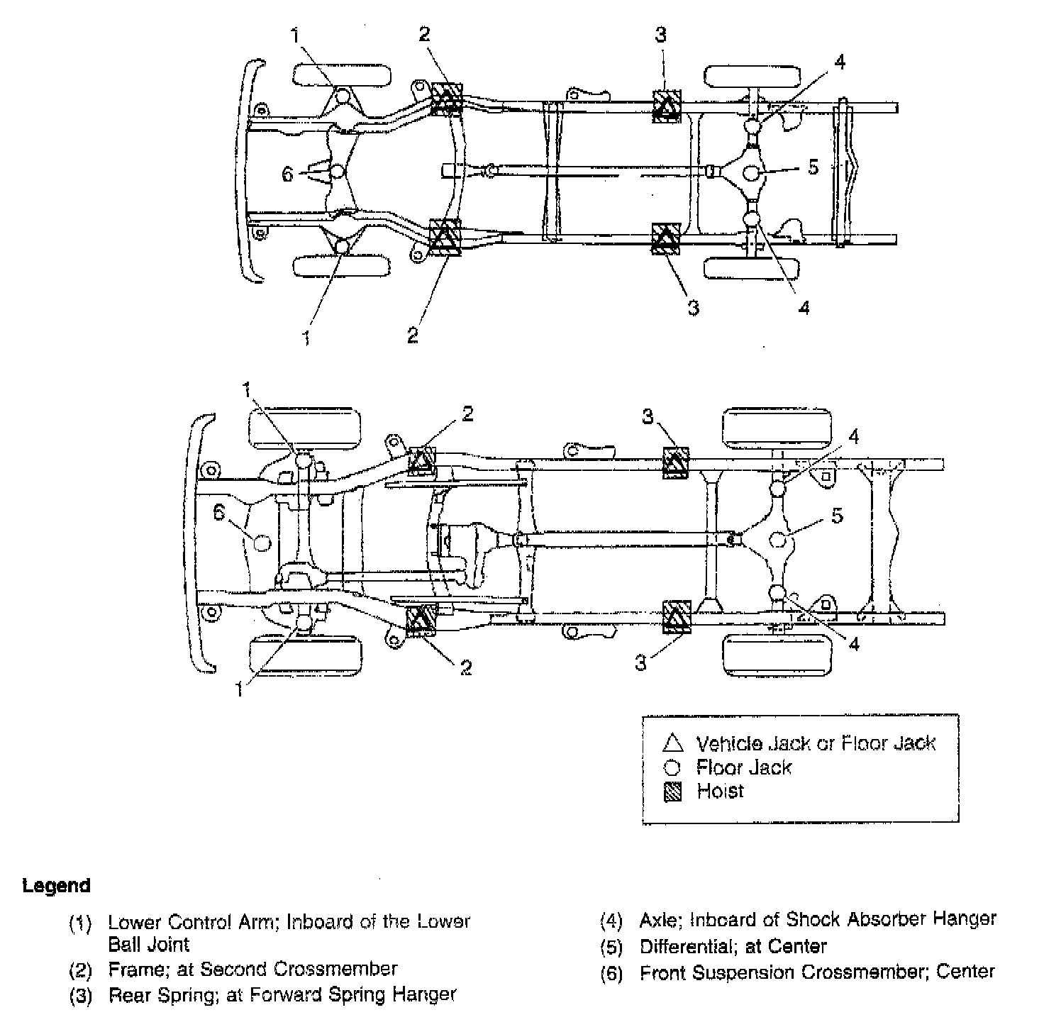 Failure to perform the previous steps could result in damage to the lifting equipment or the jacking equipment, the vehicle, and/or the vehicle's contents.