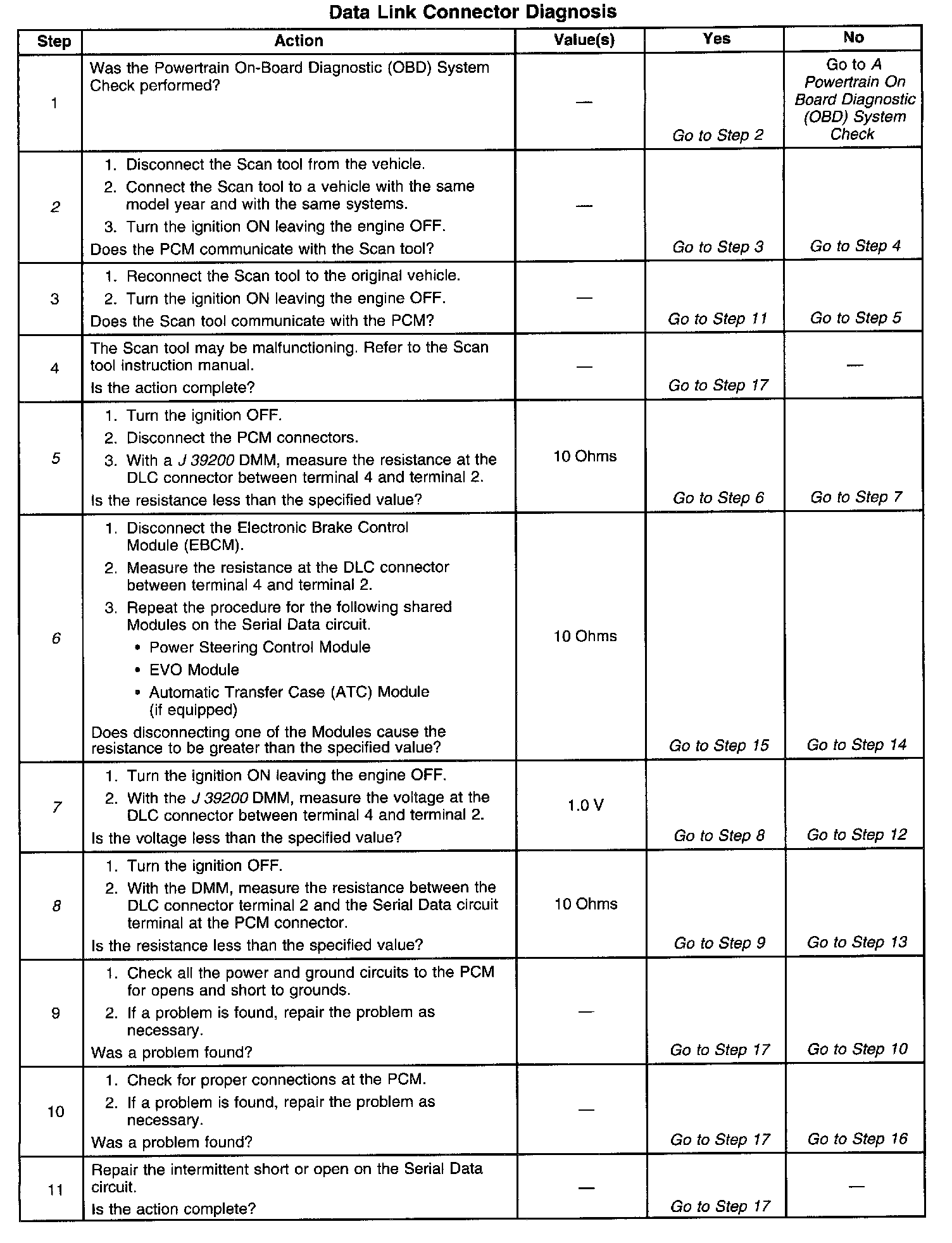 7. This step checks to determine if the Serial Data circuit is shorted to voltage.