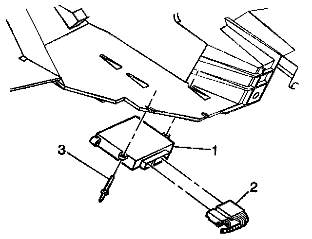 1. Remove the fasteners (3) that retain the Vehicle Speed Sensor (VSS) buffer (1) to the instrument panel carrier.