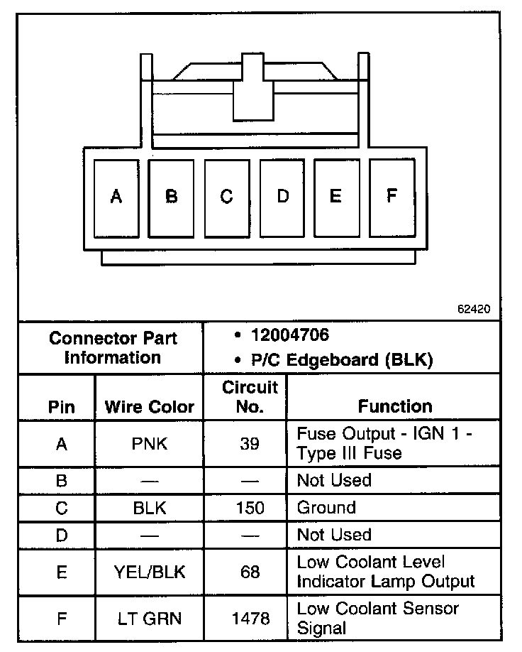 Low Engine Coolant Level Indicator Module Connector (Diesel):