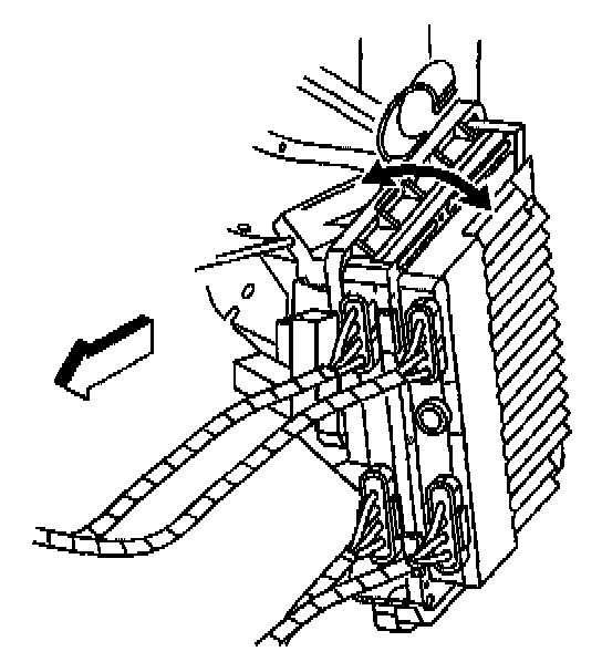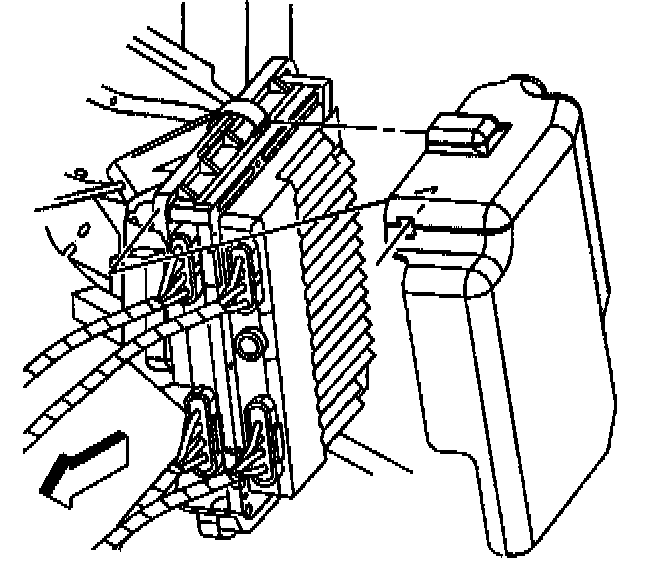 6. Insert the VCM into the VCM bracket. Ensure that the VCM is fully seated, so that the snap retainer is up into its normal position and is capable of retaining the module.