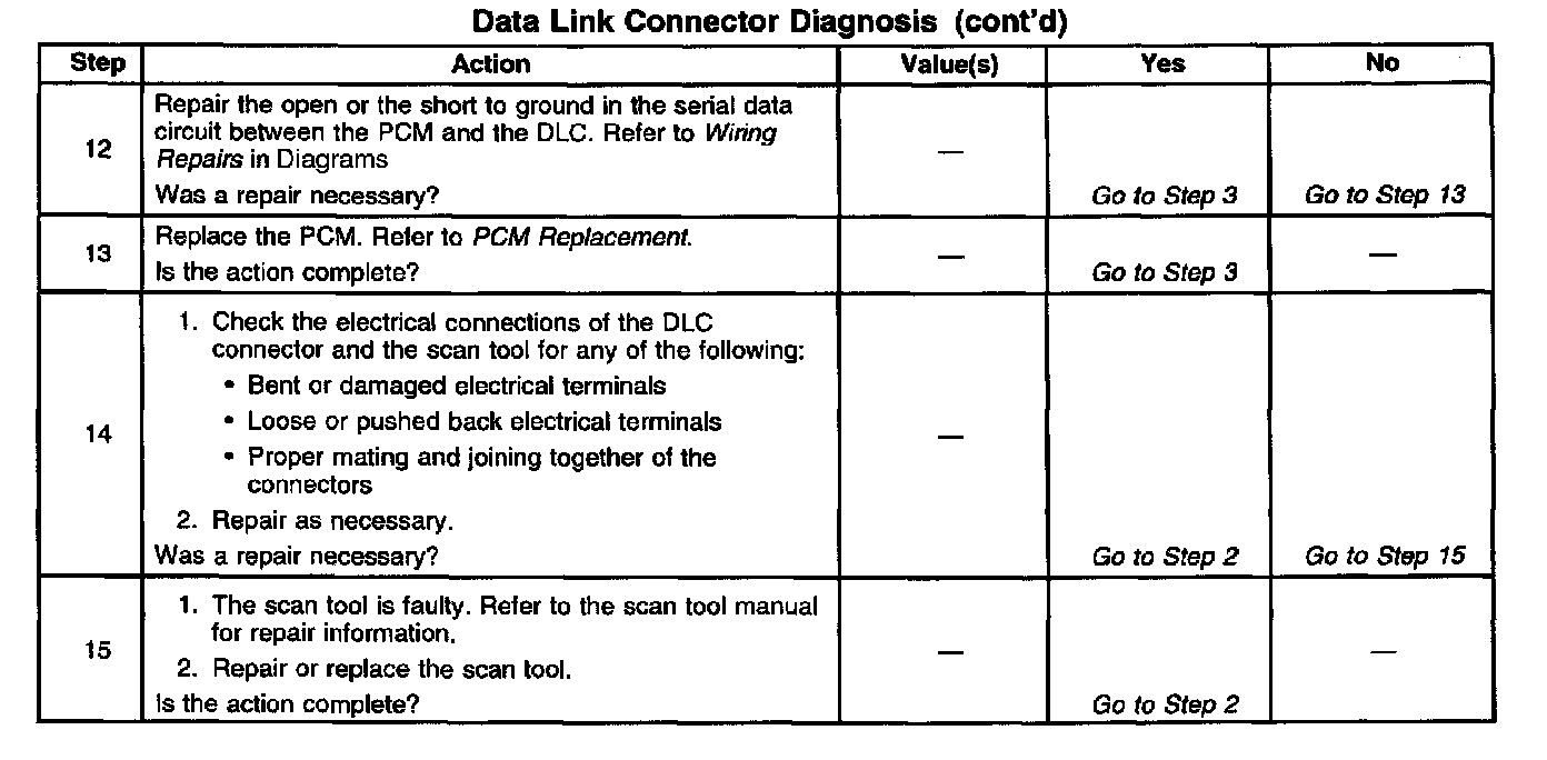 3. This step checks if the scan tool can establish communication on the PCM serial data line. This step checks for B+ at the DLC.