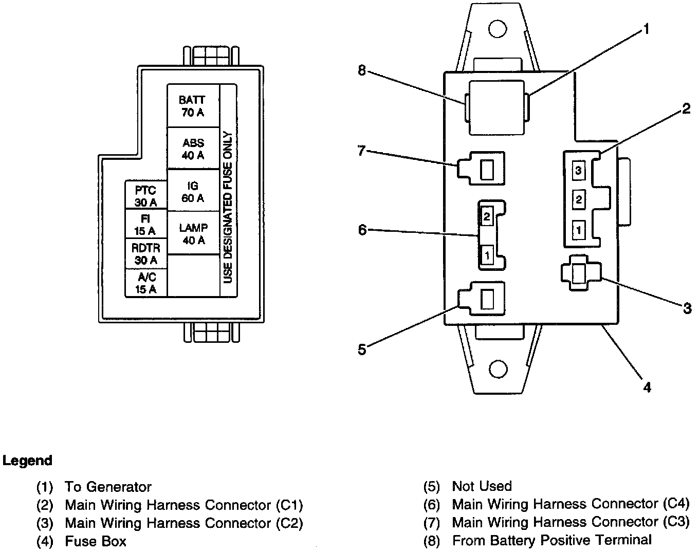 Left side of the engine compartment, mounted on Left inner side of the fender, behind the relay box