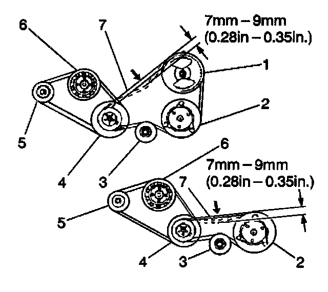 4. Ensure that the belt is properly aligned on the compressor, power steering (if equipped) and crankshaft pulleys.