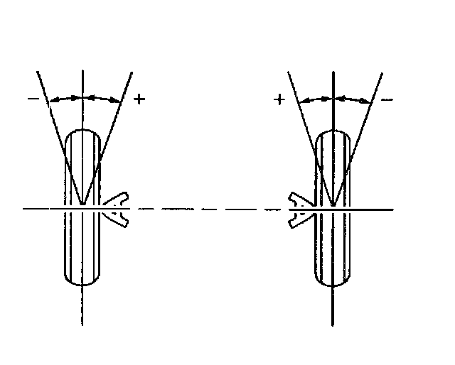 Toe is a measurement of how much the front and/or rear wheels are turned in or out from a straight-ahead position. When the wheels are turned in, toe is positive (+). When the wheels are turned out, toe is negative (-). The actual amount of toe is normally only a fraction of a degree. The purpose of toe is to ensure that the wheels roll parallel.
