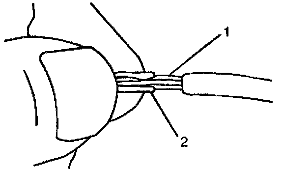 6. Overlap the two stripped wire ends and hold them between thumb and forefinger.