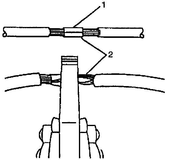 ^ Ensure that each splice is at least 40 mm (1.5 in) away from other splices, harness branches and connectors. This helps prevent moisture from bridging adjacent splices and causing damage.