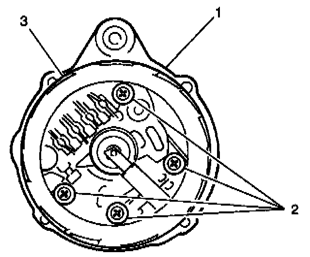 13. Remove four retaining screws (2) and the stator (3) from the rear housing.