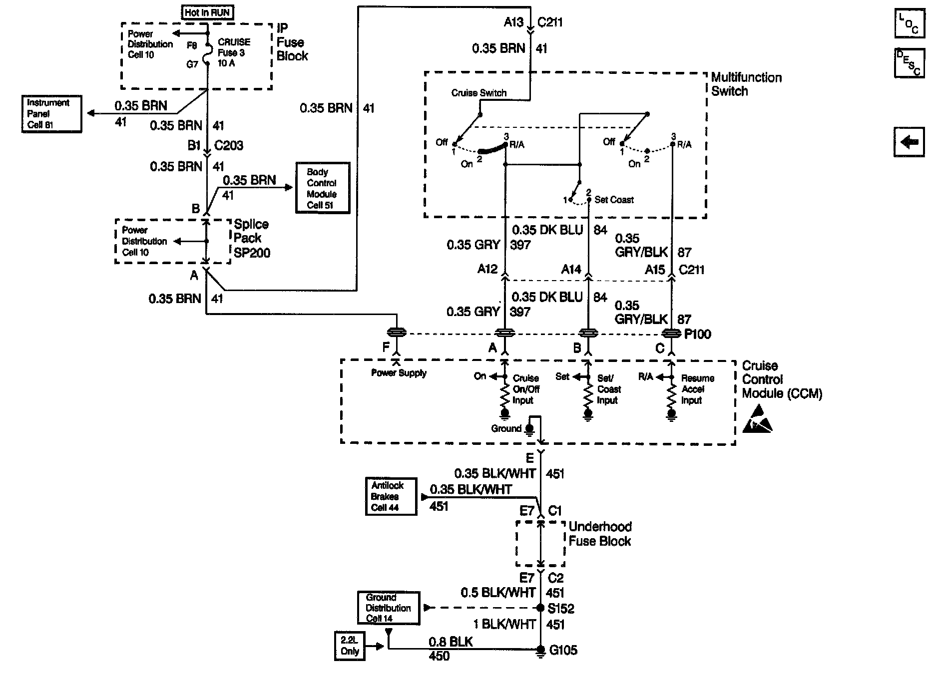 Cruise Control Schematics: CRUISE Fuse, Multifunction Switch And Cruise Control Module:
