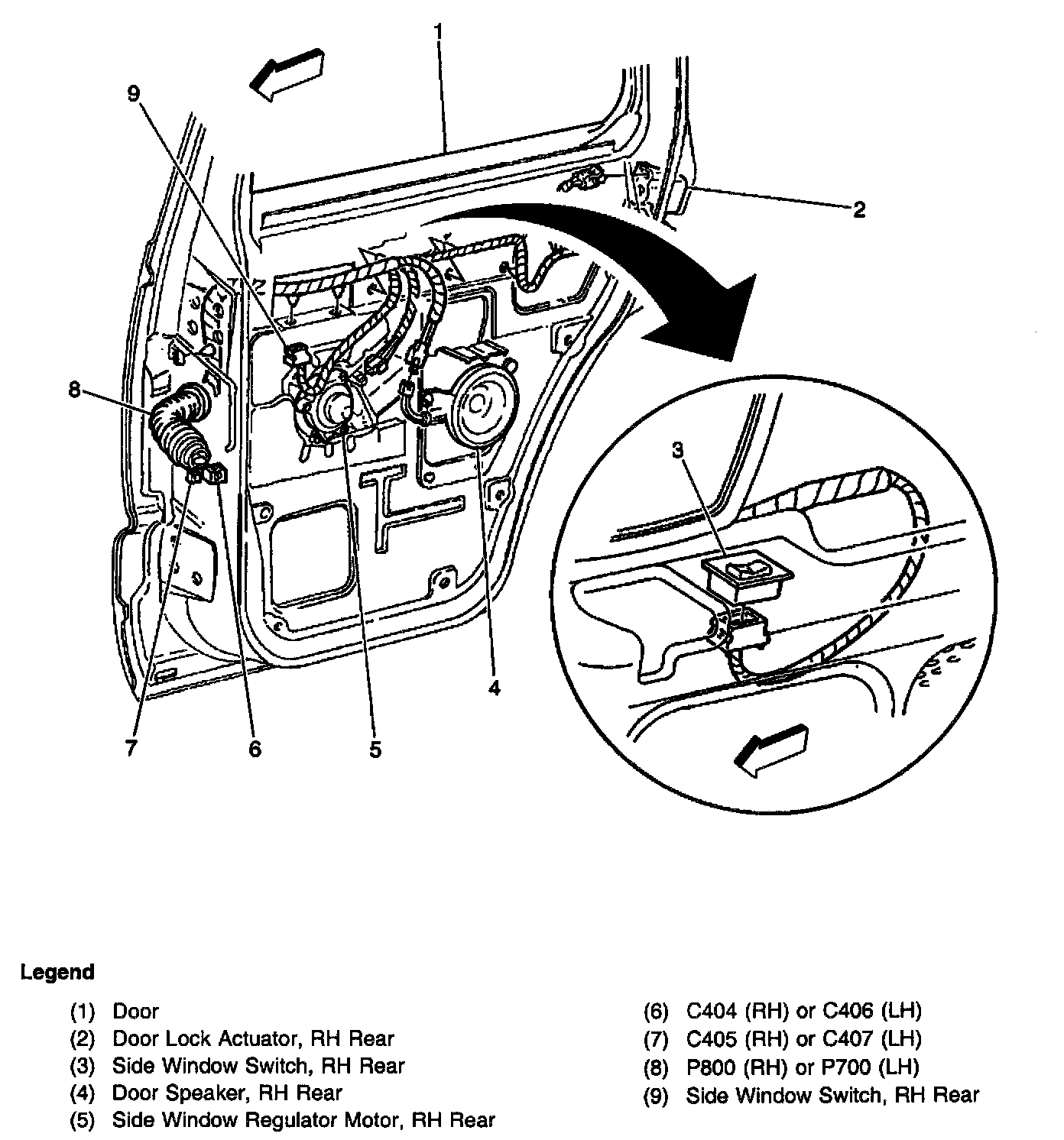 Rear Door Wiring Harness (RH Shown, LH Opposite):