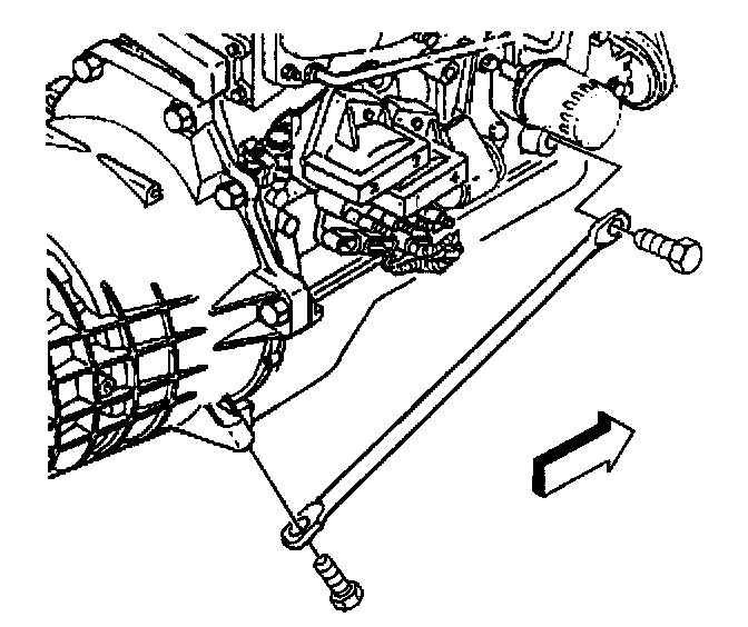 Tighten the engine to transmission brace mounting bolts to 50 N.m (37 lb ft).