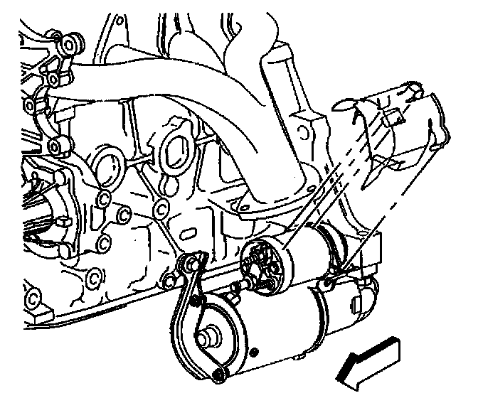 4. Install the inboard starter mounting bolt. Do not tighten.
