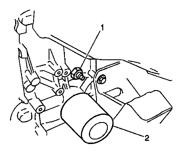 The engine oil pressure switch (1) is located in the engine block just above the oil filter (2).