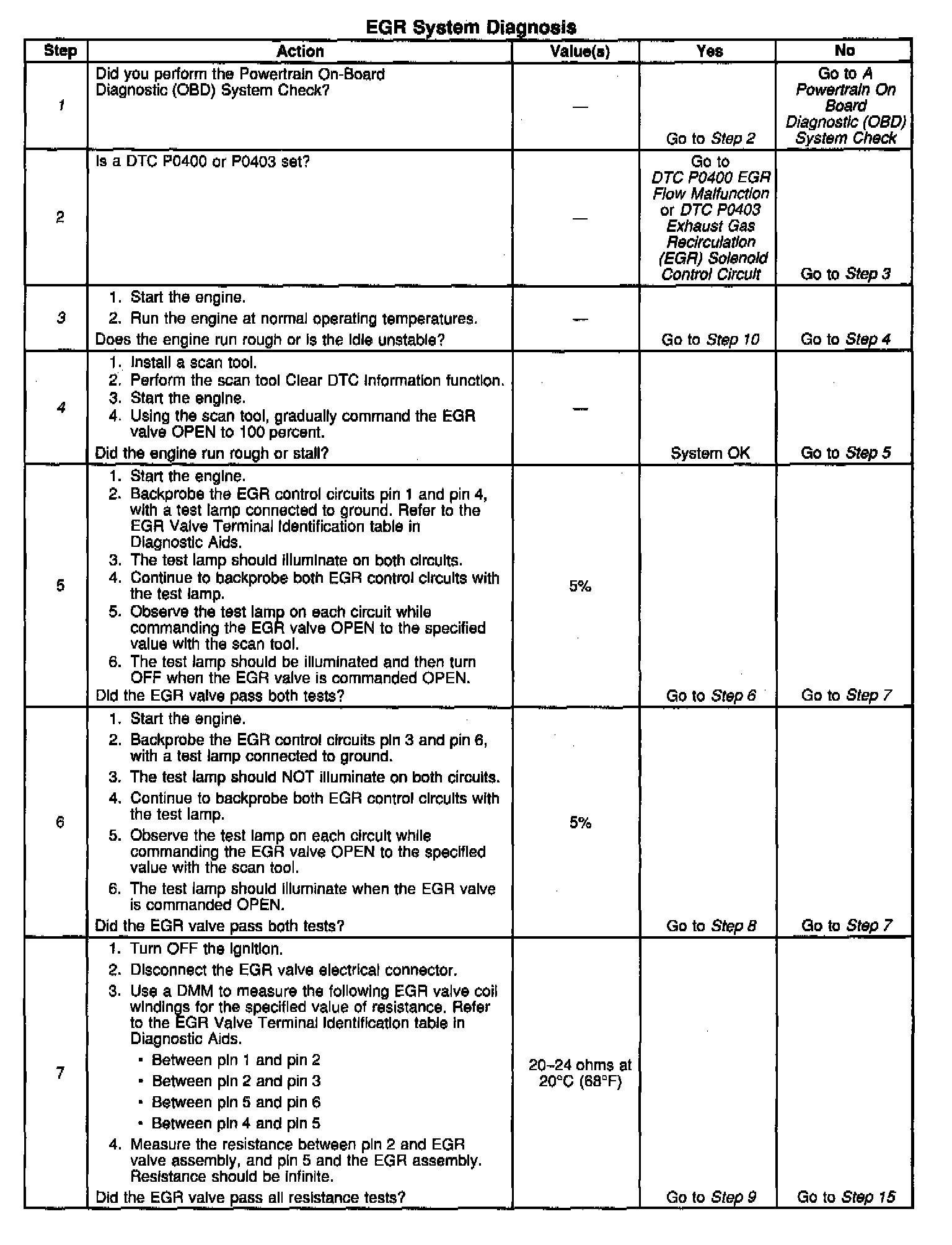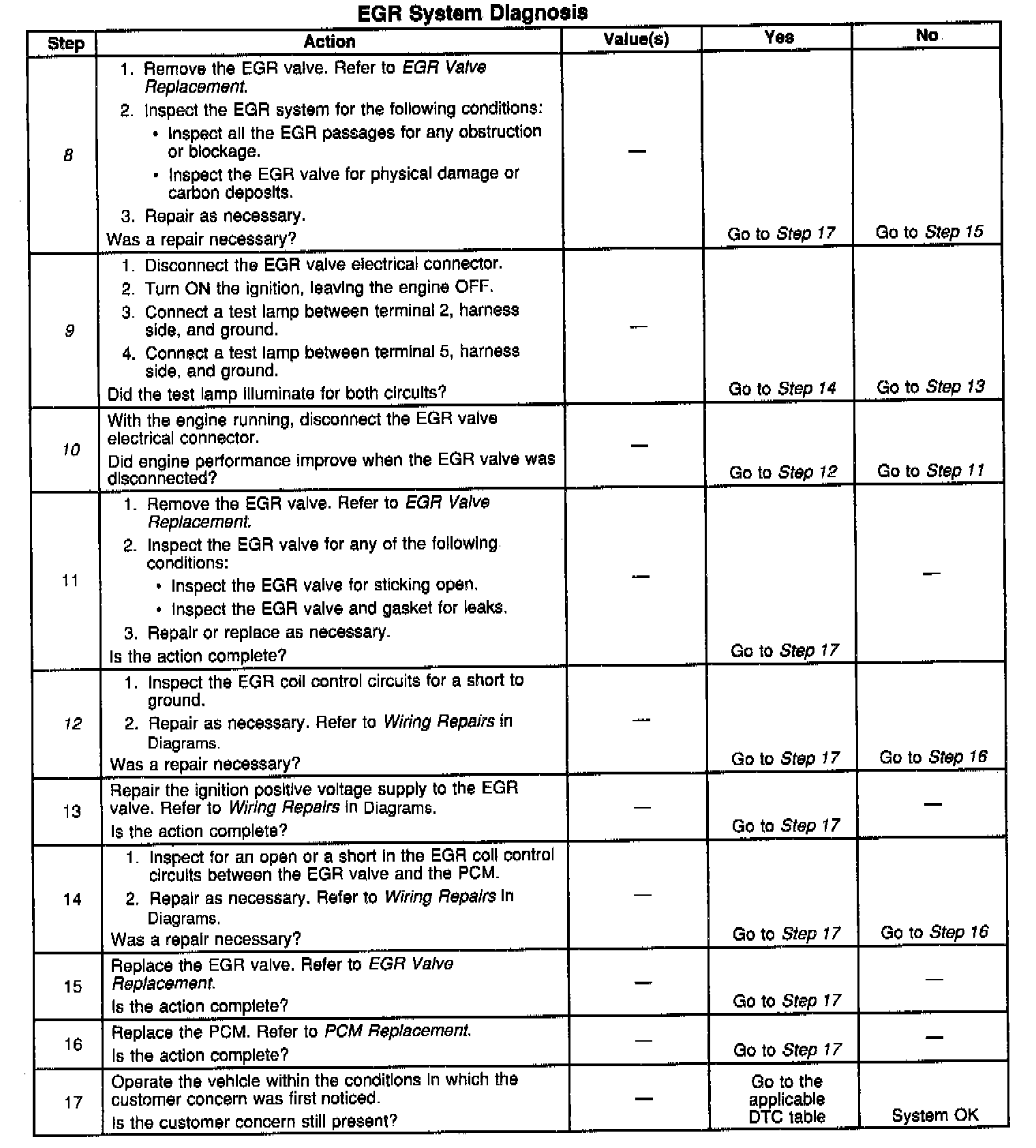 12. This step checks for an EGR valve control circuit that is shorted to ground. If the circuit wiring is OK, a faulty PCM with an internally shorted circuit can cause the EGR valve to be open