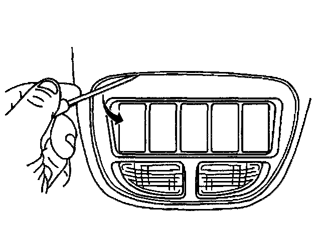 1. Insert a small, flat-bladed tool between the interior lamp/multifunction switch/reading lamp housing and the overhead console.