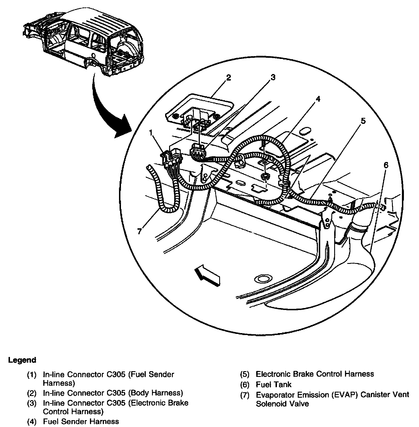 Below the left side, middle of the vehicle