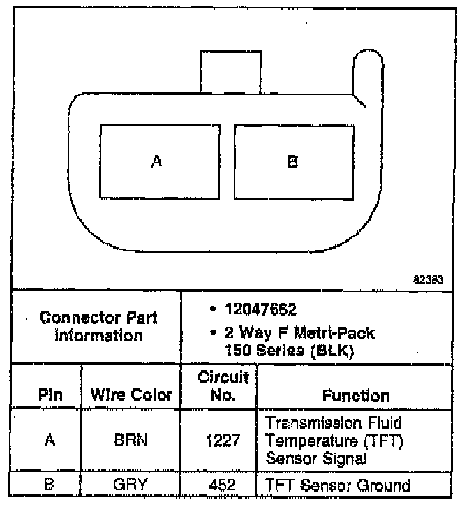 TRANSMISSION FLUID TEMPERATURE (TFT) SENSOR CONNECTOR, WIRING HARNESS SIDE