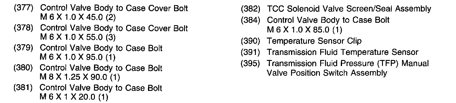 Control Valve Body Bolt Locations