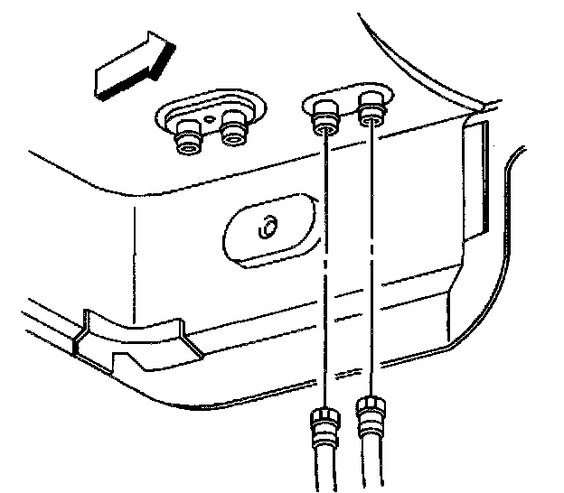 5. Disconnect the A/C line block fitting, remove and discard the O-ring seals, and cap or tape the lines to prevent contamination of the system.