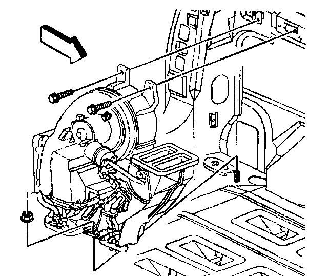 3. Install the HVAC module mounting bolts and the nut.